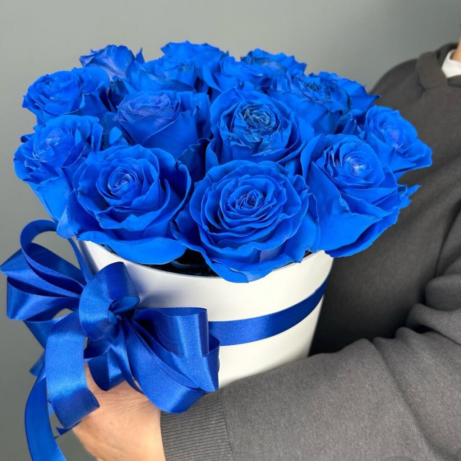 Монобукет из 15 синих роз в коробке «Ночь и море» в Красном Селе