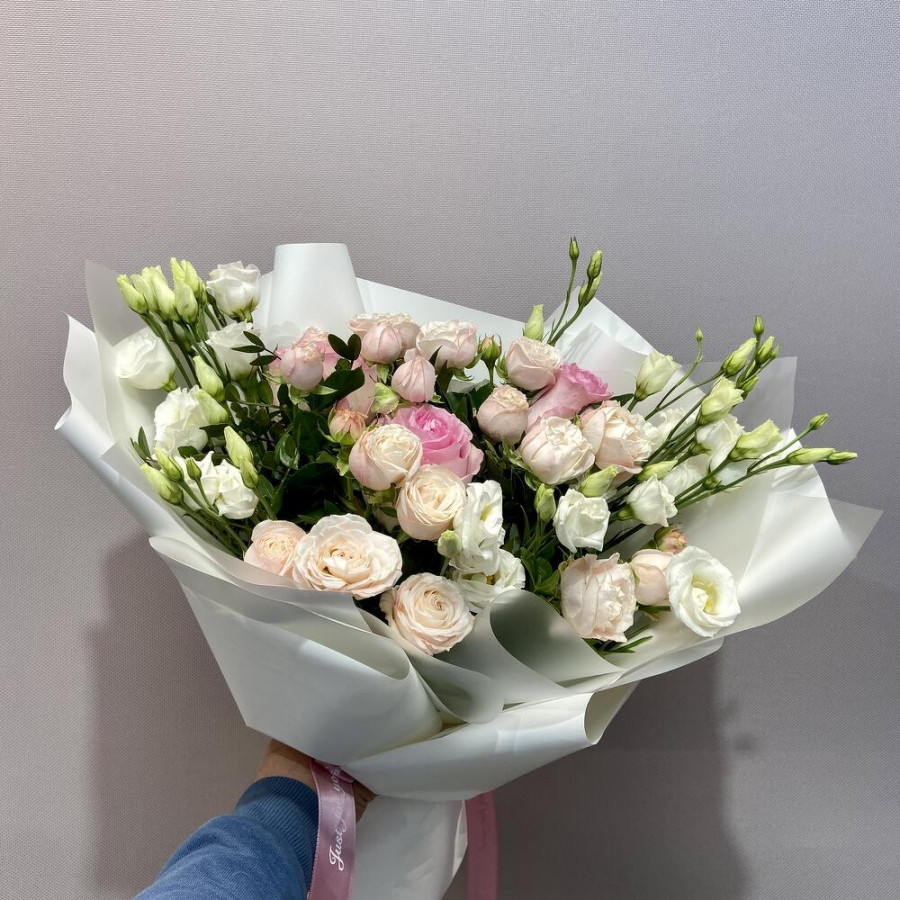 Букет из пионовидных роз и белых эустом в Красном Селе
