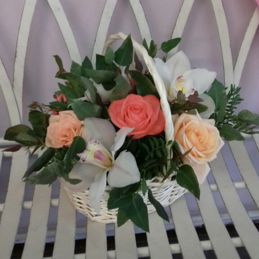 Нежные цветы царственной орхидей в сочетании с коралловыми эквадорскими розами, собранные в нежной корзинке с зеленью, станут замечательным подарком на годовщину или приятным сюрпризом без повода. Нежное классическое сочетание цветов приятно удивит получательницу и подчеркнет Ваш безупречный вкус.